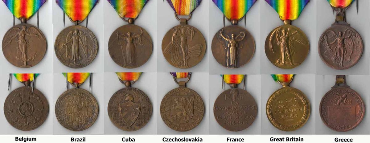 Вот вам для ознакомления любопытнейший пост, написанный мной ещё в далёком 2016 году (как быстро бежит время). После окончания Первой мировой войны конференция руководителей стран-союзников первой мировой войны 24 января 1919 года приняла предложение маршала Франции Фердинанда Фоша, учредить одинаковую памятную медаль для всех военнослужащих стран-победительниц, участвовавших в 1 мировой войне.